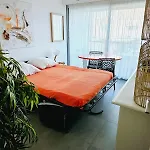 Rivage De Reve - Hyeres Plage共有1间卧室,配有一些基本设施,如日光浴,阳光露台 和花园.客房内可以欣赏花园美景. 到Plage Bona走路只需5分钟,而离Plage des Pesquiers只有30米.